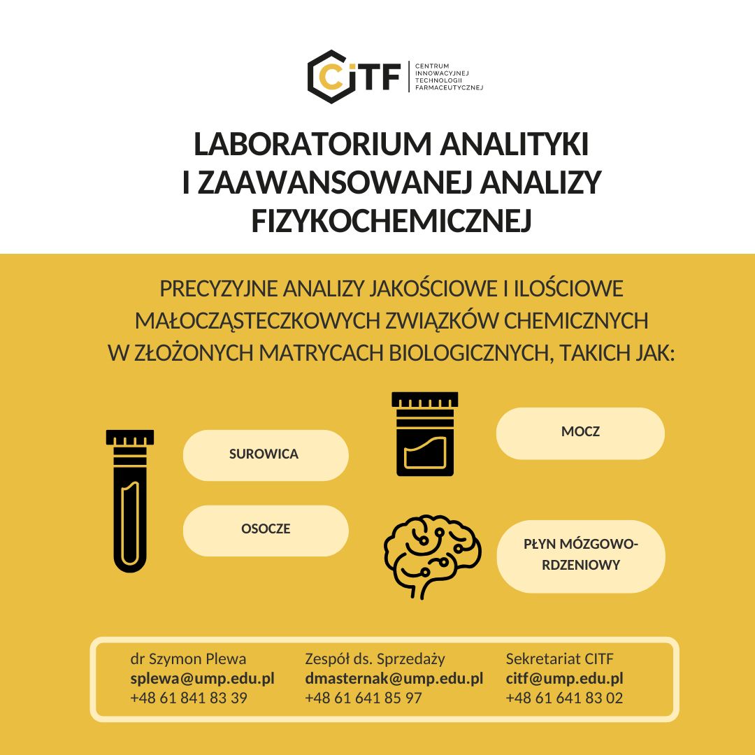 Centrum Innowacyjnej Technologii Farmaceutycznej oferuje zaawansowane usługi badawcze z wykorzystaniem wysokosprawnego chromatografu cieczowego Agilent 1260 Infinity II połączonego ze spektrometrem mas SCIEX TripleQuad 5500+ QTRAP ze źródłem jonów Turbo V™.